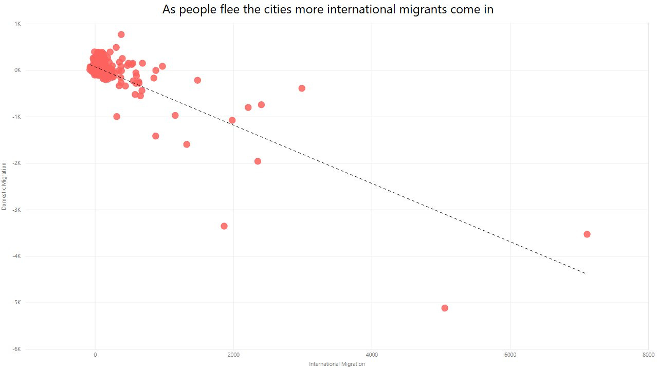 Immigration has too many effects on locals to measure all of them cleanly, let alone weigh them appropriately. But there is a simpler way to evaluate what is happening: watch what people do. If immigration were broadly beneficial to natives, we would expect them to move toward it—to follow the opportunity it allegedly creates. If it is harmful, we would expect the opposite. And what we observe is not subtle.
