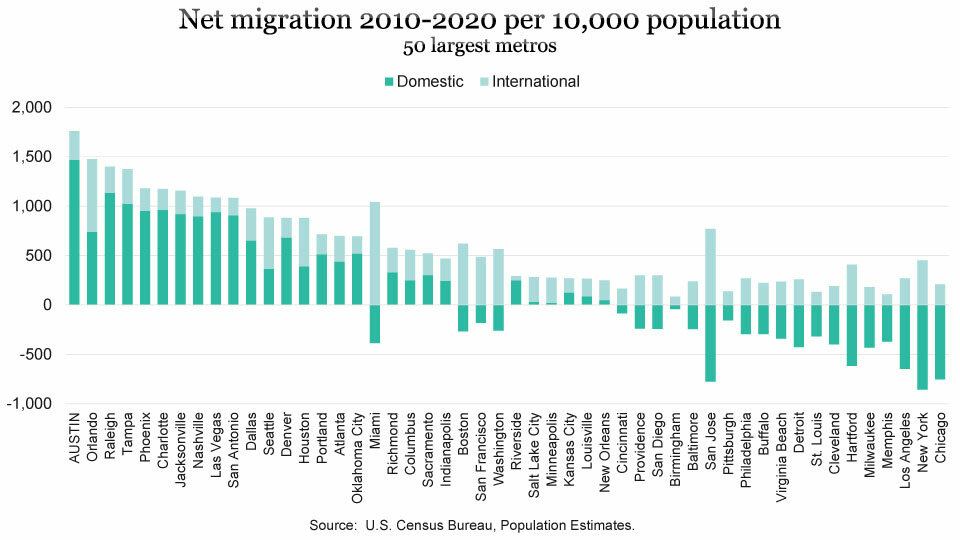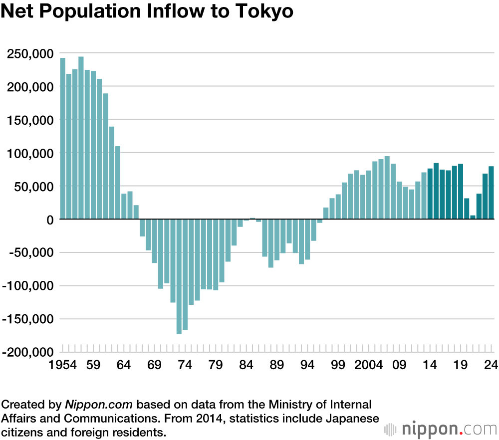 In contrast to all these examples, Japan exhibits the traditional pattern of domestic migration towards economic opportunity (note that the outflow from the 60s–90s was due to suburbanization and automobiles, which then reversed in the 21st century service economy):